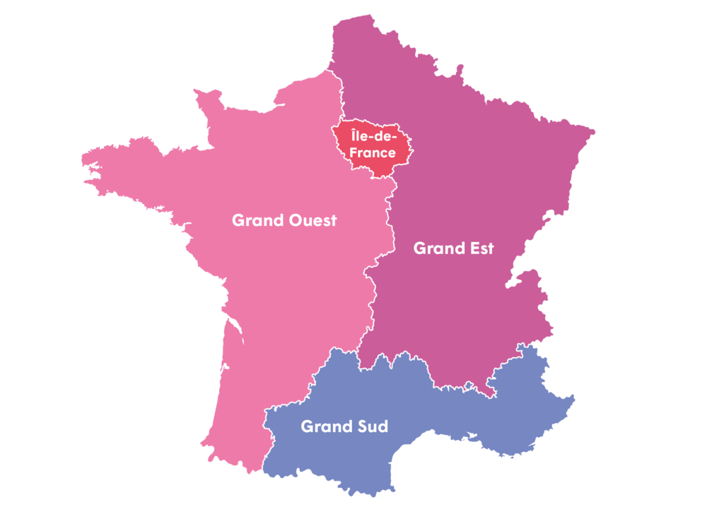| Grand Ouest | Grand Est | Grand Sud | Île-de-France | |